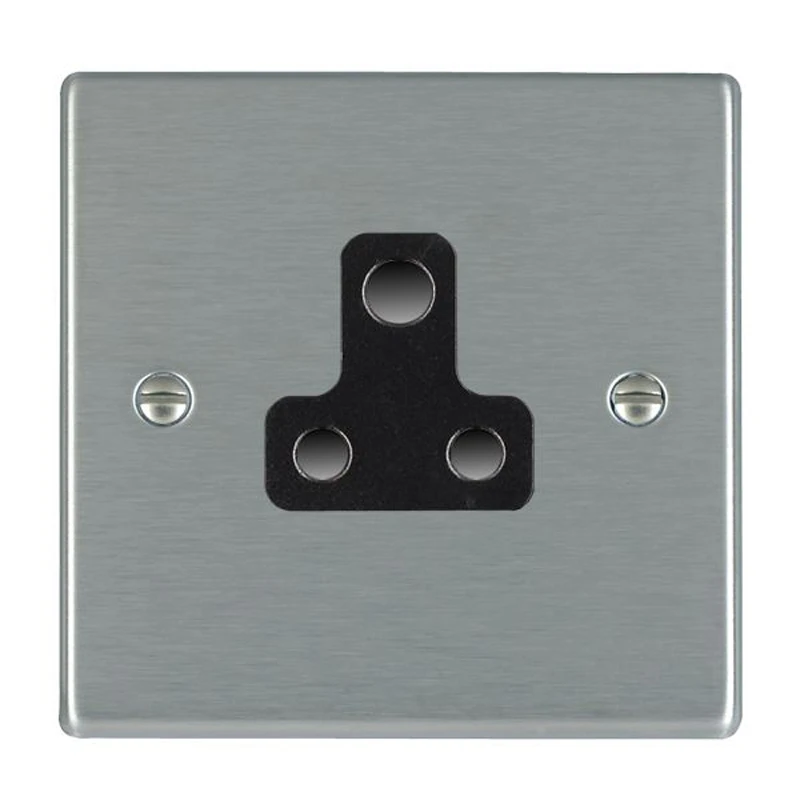 Hamilton Socket 1 Gang Unswitched 5A 88X88mm Satin Steel Black Insert