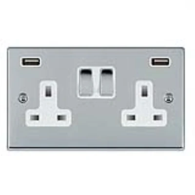 Hamilton Socket 2 Gang Single Pole Switched USBs 13A 85 x 145mm Bri Chrome/Wht