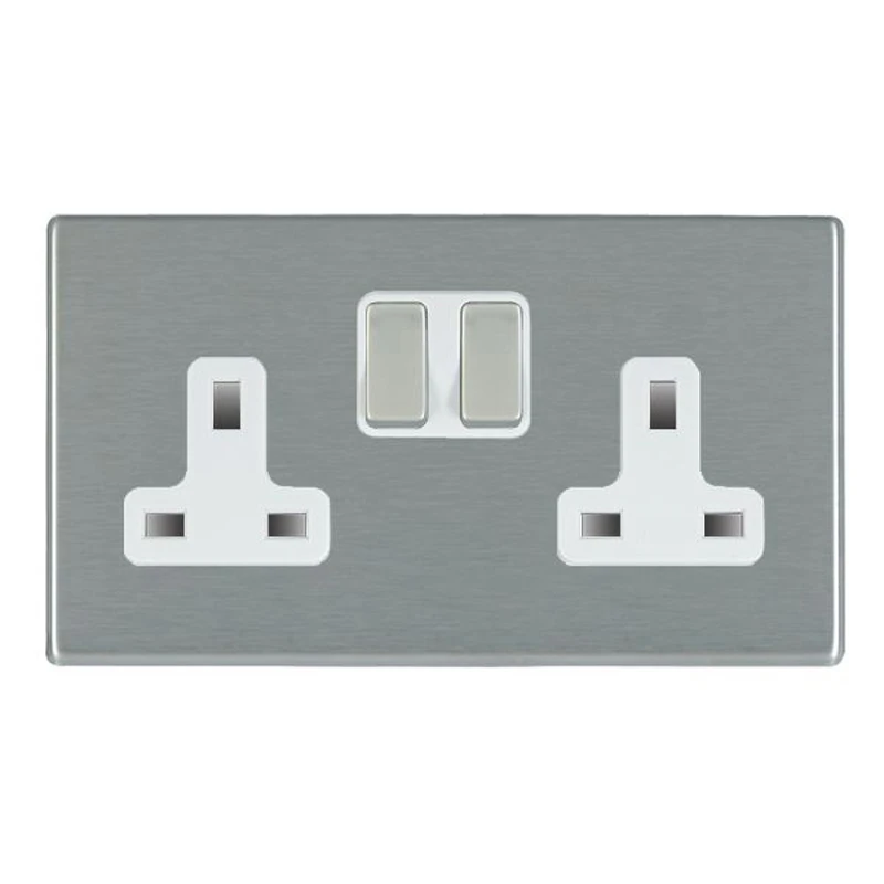 Hamilton Socket 2 Gang Switched 13A 146 x 86mm Satin Steel White Insert
