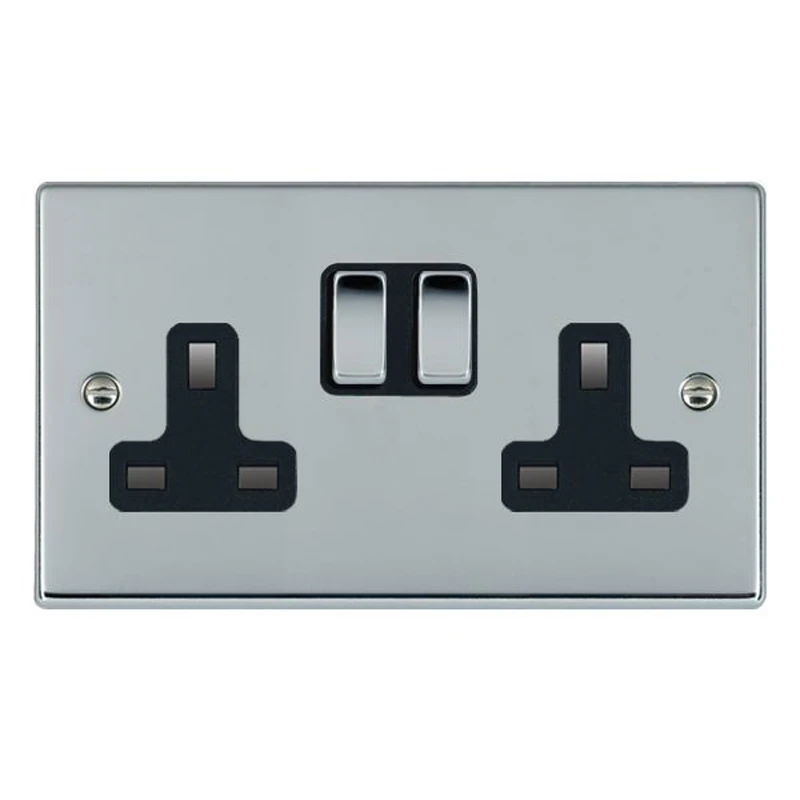 Hamilton Socket 2 Gang Switched 13A 85 x 145mm Bri Chrome/Bri Chrome Black Insert