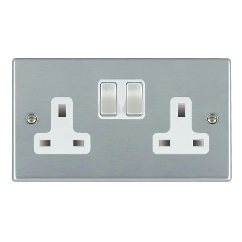 Hamilton Socket 2 Gang Switched 13A 85 x 145mm Satin Chrome/Satin Chrome White Insert