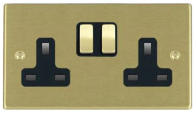 Hamilton Socket 2 Gang Switched 13A 85X145mm Satin Brass/Satin Brushed Black Insert