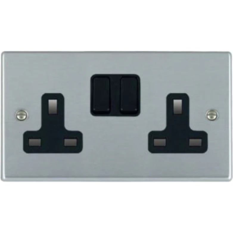 Hamilton Socket 2 Gang Switched 13A 85X145mm Satin Chrome Black Insert
