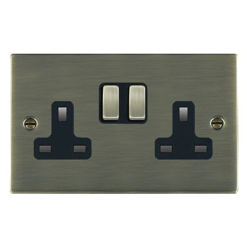 Hamilton Socket 2 Gang Switched 13A 86 x 146mm Antique Brass/Ant Brushed Black Insert