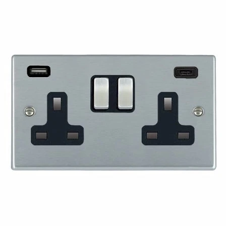 Hamilton Socket 2G DP Switched USB+C Outlets 13A 85X145mm Sat Chr/Sat Chr