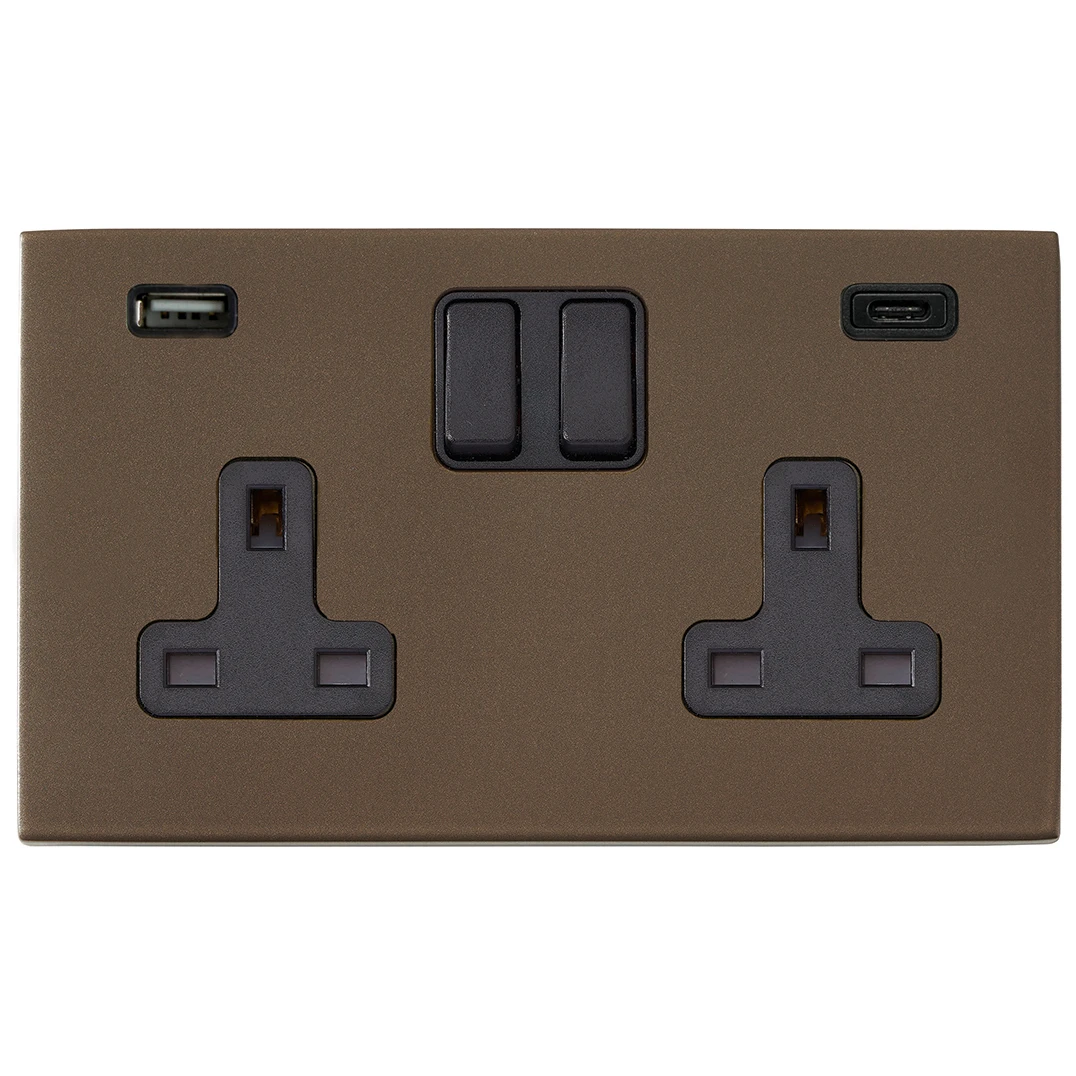 Hamilton Socket 2G DP Switched USB+C Outlets 13A 86X145mm Richmond Bronze