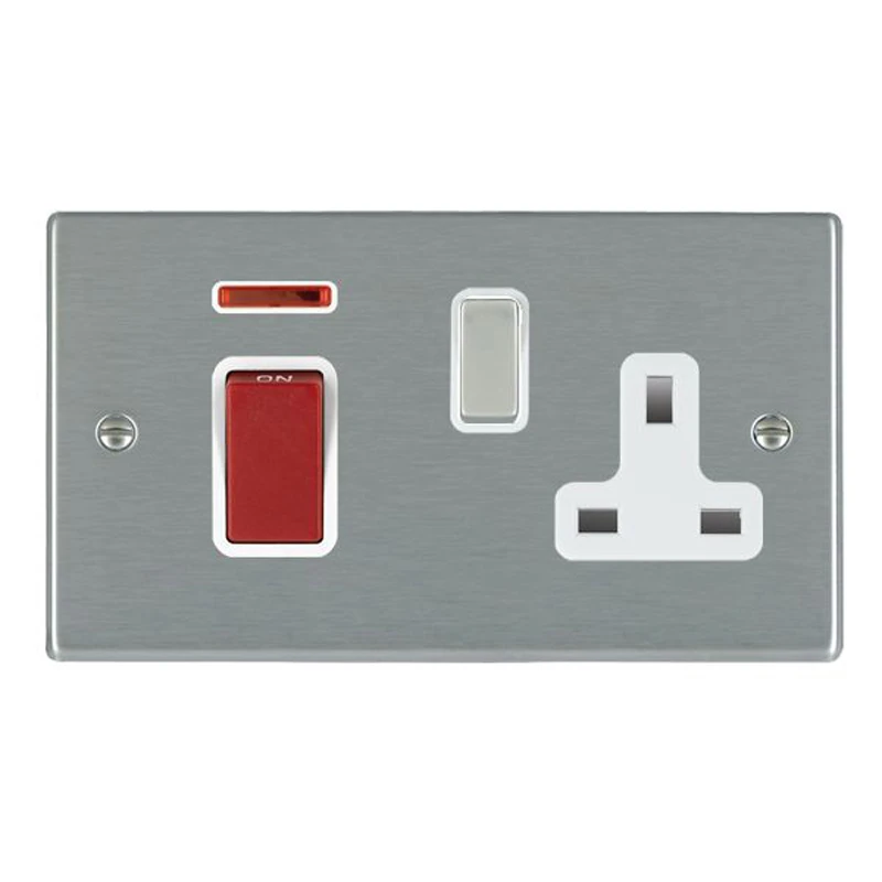 Hamilton Socket Rocker Red 1 Gang Dp+13A Socket 45A 85X145mm Satin Steel/Satin Steel White