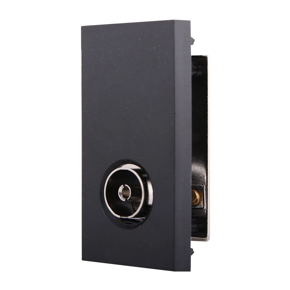 Hamilton EuroFix 1in/1out Non-Isolated TV Coaxial Socket Outlet Module is a comprehensive range designed to fits most Hamilton plate ranges. Manufactured under an accredited BS EN ISO 9001 : 2008 quality system. Available in black colour and 25 x 50mm. Must be earthed (ref BS7671 415.2.1). Internal Use Only. Note Mains operated and extra low voltage products must not be installed in the same face plate aperture. When installing within the same back box a suitable phase barriers MUST be used to separate the two voltages. See BS 7671 Wiring regulations for further details. Non-Isolated Co-Ax outlet (IEC 169-2 Female Socket). · · · Module Dimensions H: 50mm W: 25mm D: 22mm · · Generic Size: Module · · IP Rating: IP2XD · · Standard/Approval: BS 5733 · · Insert Colour: Black