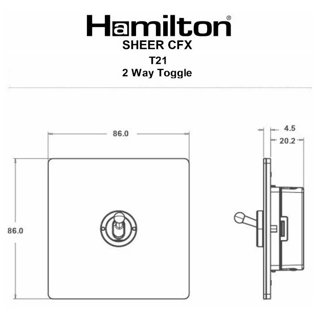 Hamilton Switch 1 Gang 2 Way Dolly/Toggle 20Ax 86X86mm Richmond Bronze