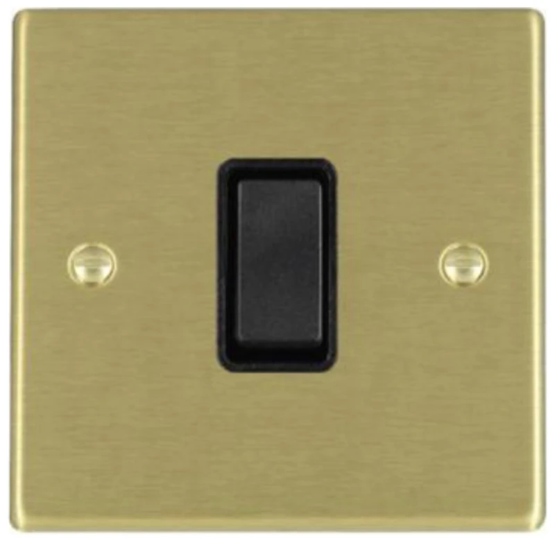 Hamilton Switch Rocker 1 Gang 2 Way 10A 88X88mm Satin Brass Black Insert
