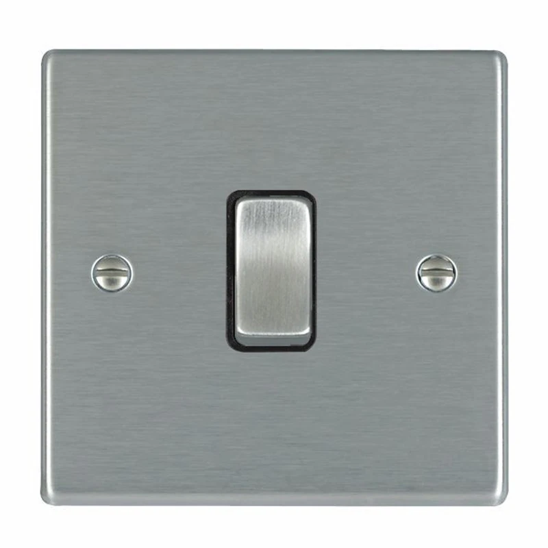 Hamilton Switch Rocker 1 Gang Intermediate 10A 88X88mm Satin Steel/Satin Steel Black Insert