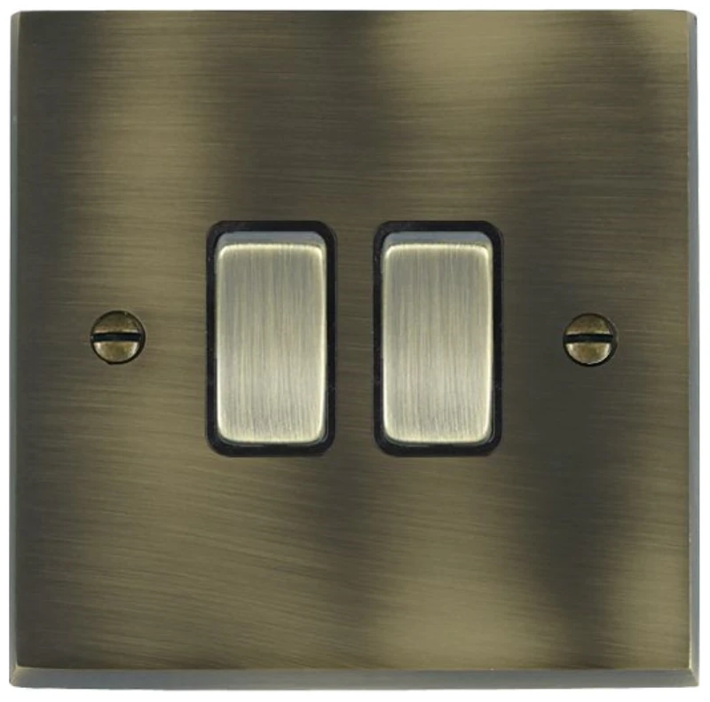Hamilton Switch Rocker 2 Gang 2 Way 10A 88X88mm Antique Brass Black Insert