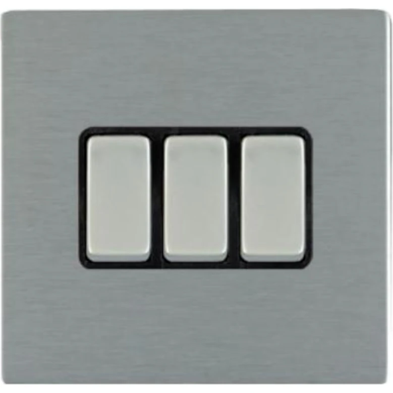 Hamilton Switch Rocker 3 Gang 2 Way 10A 86X86mm Satin Steel Black Insert