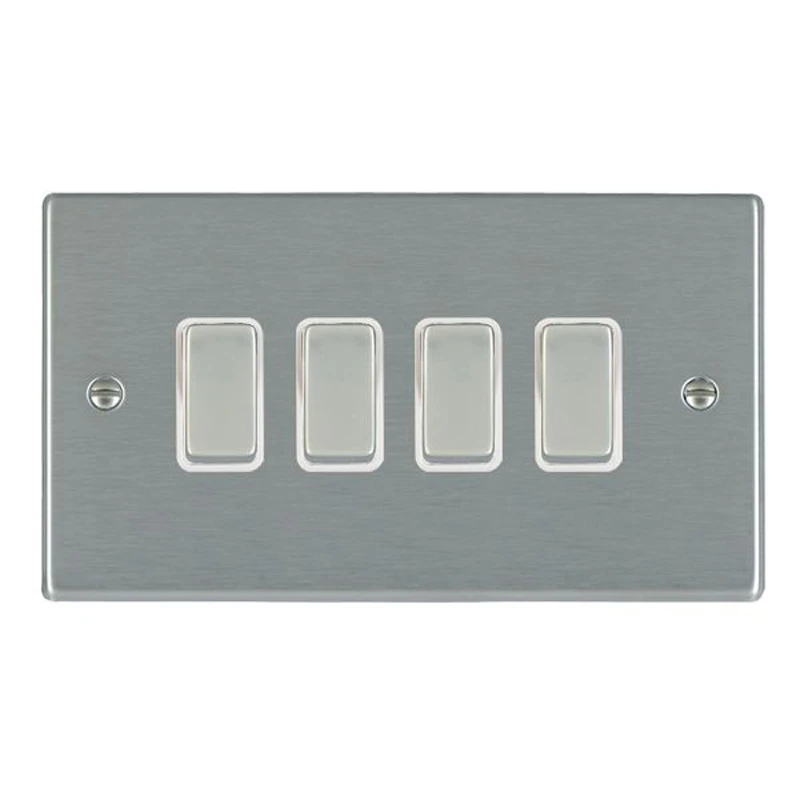 Hamilton Switch Rocker 4 Gang 2 Way 10A 85X145mm Satin Steel/Satin Steel White Insert