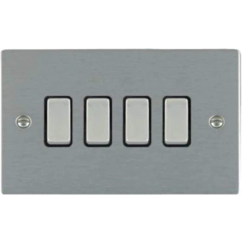 Hamilton Switch Rocker 4 Gang 2 Way 10A 86X146mm Satin Steel/Satin Steel Black Insert