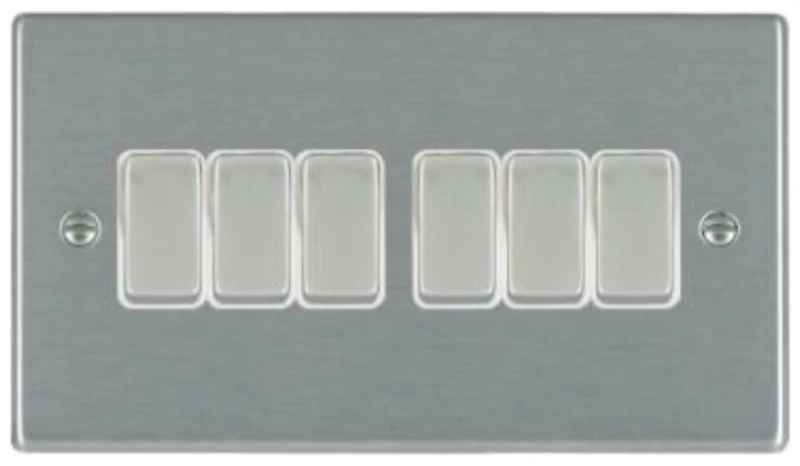 Hamilton Switch Rocker 6 Gang 2 Way 10A 85X145mm Satin Steel/Satin Steel White Insert