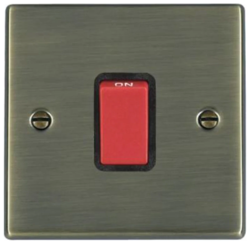 Hamilton Switch Rocker Red 1 Gang DP 45A 88X88mm Antique Brass Black Insert