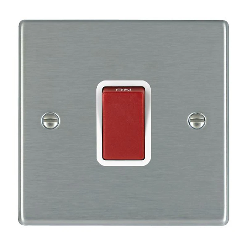 Hamilton Switch Rocker Red 1 Gang DP 45A 88X88mm Satin Steel White Insert
