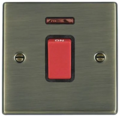 Hamilton Switch Rocker Red 1 Gang Dp+Neon 45A 88X88mm Antique Brass Black Ins