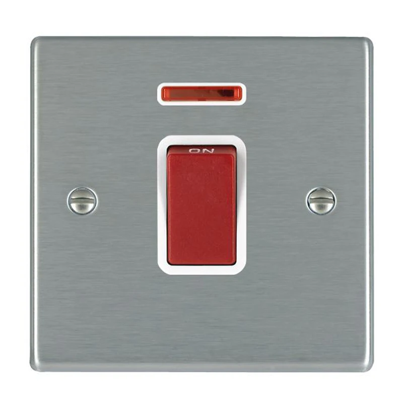 Hamilton Switch Rocker Red 1 Gang Dp+Neon 45A 88X88mm Satin Steel White Insert