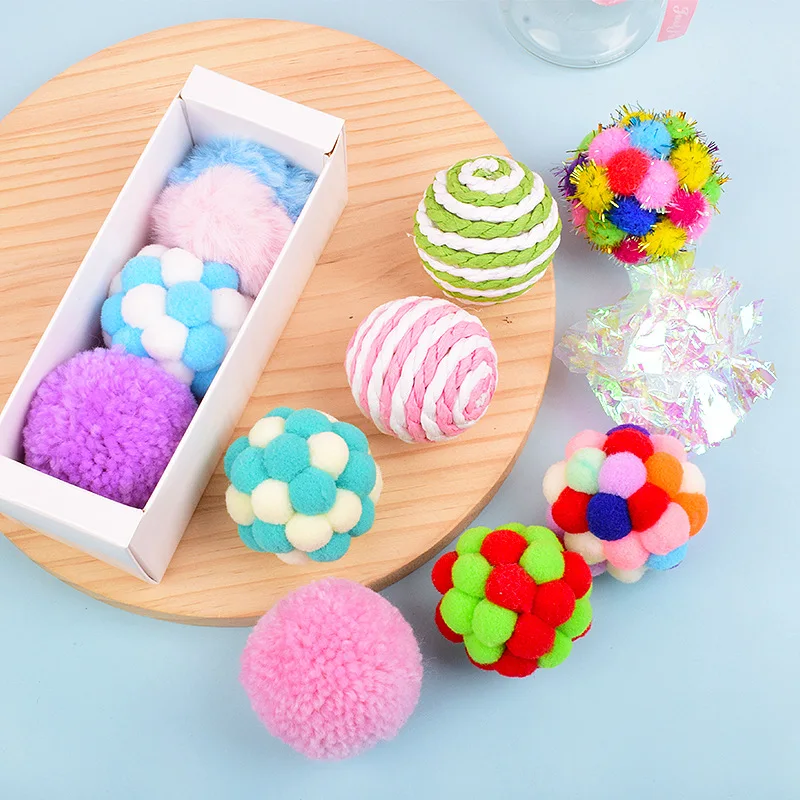 Handmade Cat Toy Plush Ball with Bell-Scratch-Resistant & Bite-Resistant Gift Box