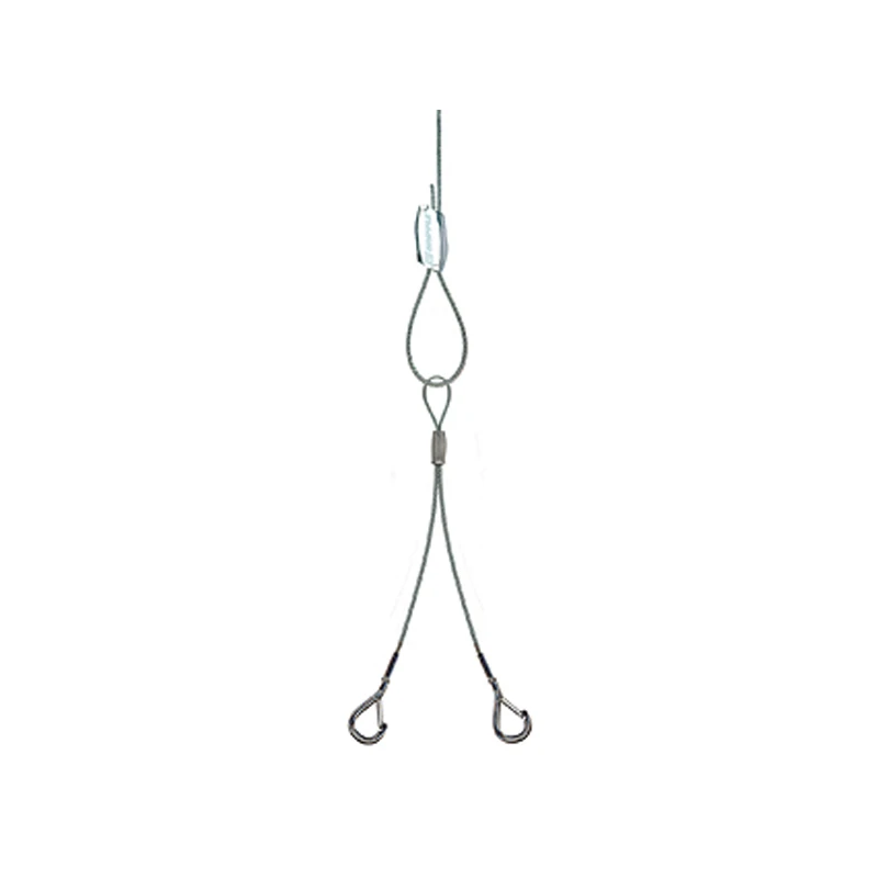 Double attachment point accessory of use with a standard Hanger. Accessory for attachement to a Standard hanger. Gripple adjustment at working height. Available with all End fixing configurations. Ideal for services requiring maintenance. Available in different leg lengths: 150mm, 300mm or 500mm. Recommended for drops in excess of 2m. Final installation angle at the ferrule should not exceed 60°. · · · Cable Length: 2m · · Length: 500mm · · Cable Capacity: 2m · · Capacity: 10 – 45kg · · Finish: Galvanised