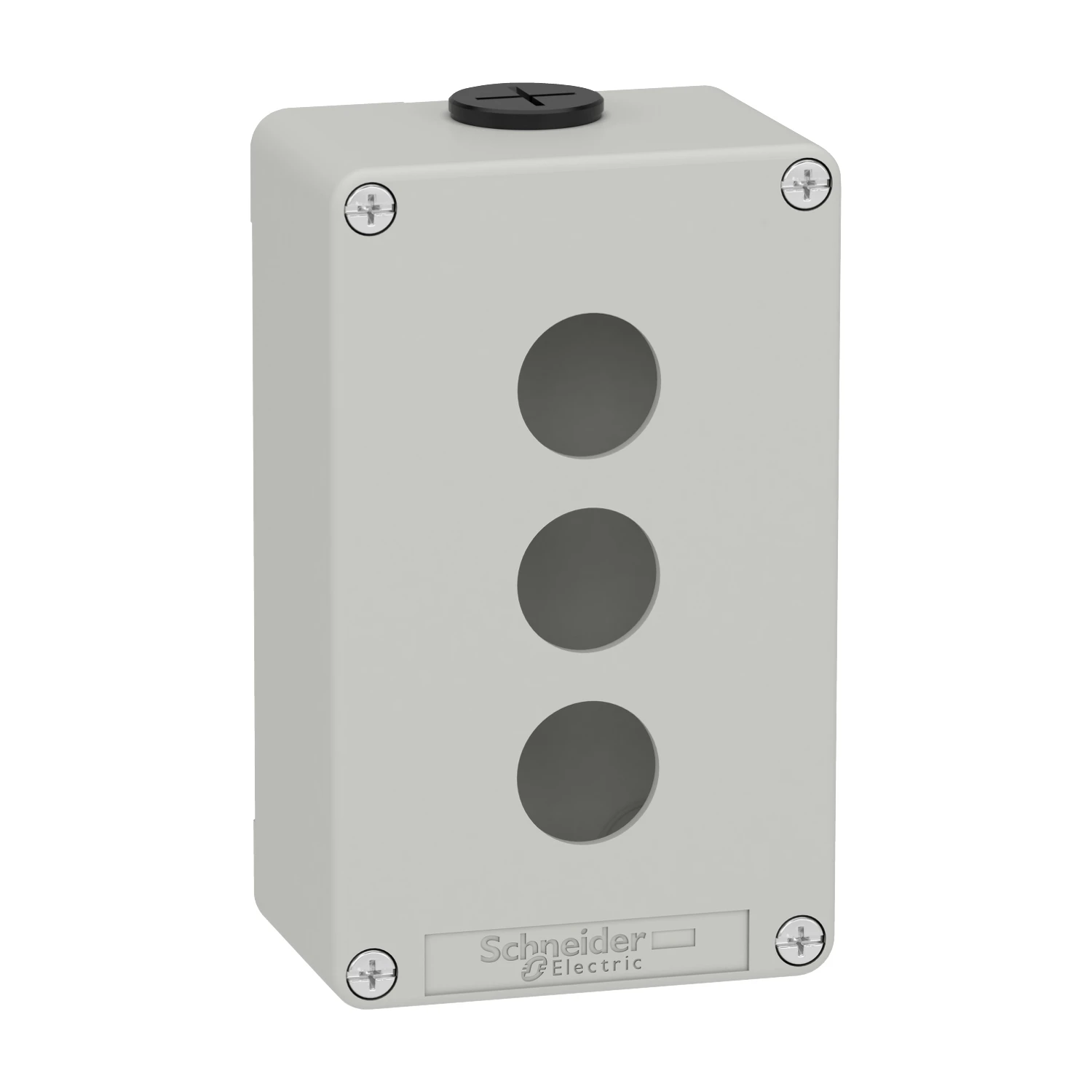 Technical Specifications Technical Specifications Enclosure for control circuit devices Colour housing cover Grey Housing material Zinc Degree of protection (IP rating) IP65/IP67 Construction type housing Surface mounting housing Height 130 mm Depth 51.5 mm Width 80 mm Diameter openings 22.5 mm Number of command positions 3 · Technical Data Sheet – Click to Download · Technical Data Sheet – Click to Download · Manual: https://asset.eezybridge.com/ad7e7626-8f4a-4edb-b78d-9ca040e321dd/2205431
