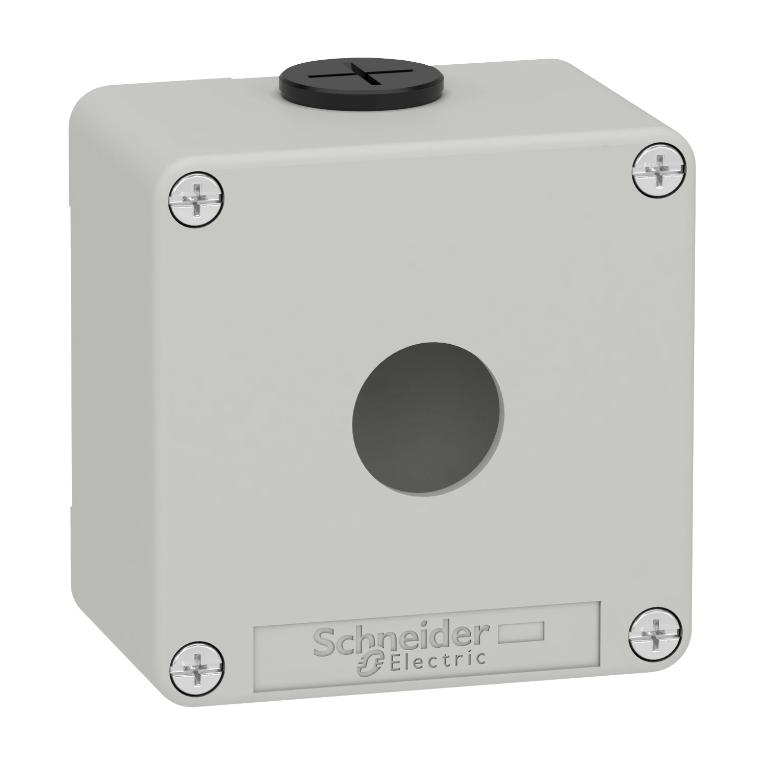 Technical Specifications Technical Specifications Enclosure for control circuit devices Colour housing cover Grey Housing material Zinc Degree of protection (IP rating) IP65/IP67 Construction type housing Surface mounting housing Width 80 mm Number of command positions 1 Depth 51.5 mm Height 80 mm Diameter openings 22.5 mm · Technical Data Sheet – Click to Download · Manual: https://asset.eezybridge.com/ad7e7626-8f4a-4edb-b78d-9ca040e321dd/2205431