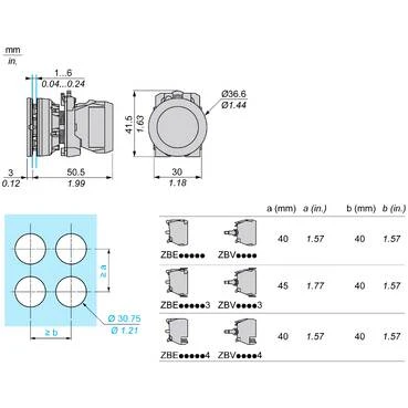 This wireless and batteyless transceiver provides an ergonomic interface for controlling your machines It is impact resistant, dust resistant, water resistant and vibration resistant thanks to its IP65, making it ideal for operation in harsh environments It is easily installed and replaced on compatible complete push-button units and contact blocks via snap-fit assembly · · · Kit composition Antenna with cable 0.9 m · · Connector type SMA female · · Maximum sensing distance 10 m transmitters, receivers and relay-antenna · · IP degree of protection IP65 conforming to IEC 60529 · · Width: 20.5mm · · Weight: 119g · · Depth: 85mm