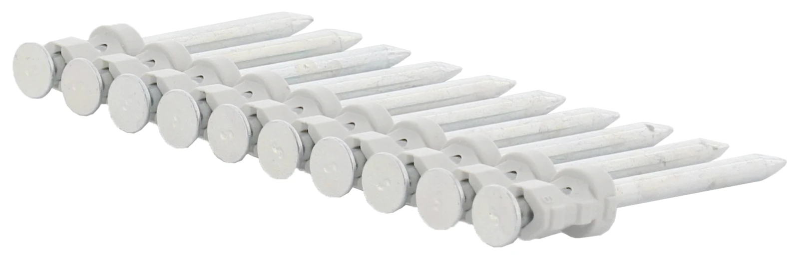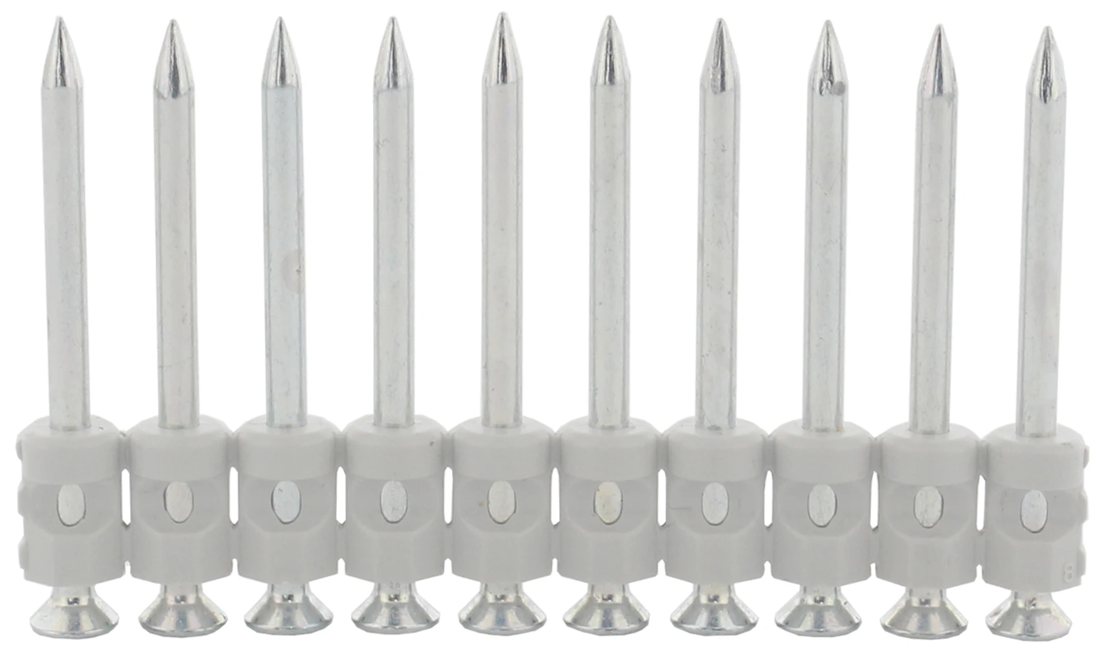 High performance flush head pins with gas for steel, hard & pre-stressed concrete, 17mm for PULSA 40 · · · Premium pins, ensuring no plastic residue after fixing & excellent success rate · · Collation fragments on impact to leave pin flush to the fixed component · · 10 strip collation (suitable for 20 and 50 pin magazine) + 1 x Fuel Cell · · Fuel Cell Capacity 500 shots