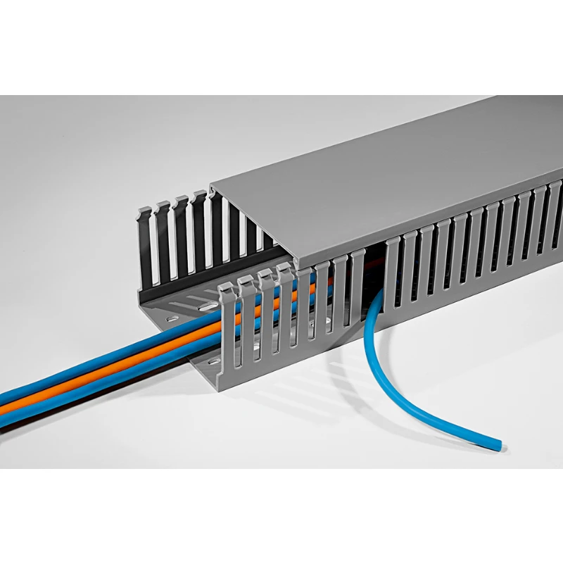 Technical Specifications Technical Specifications Slotted cable trunking system Colour Grey Height 25 mm Width 25 mm Length 2000 mm RAL number – Useful cross section – mm² Distance of slots 7.5 mm Slit width 5 mm Diameter – mm Flexible No With cover No Self-extinguishing Yes Halogen free No