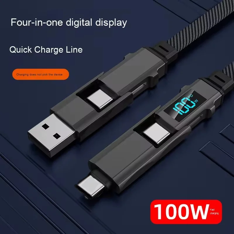 High Quality Digital Display 100W Fast Charging 4-in-1 Double Type C Data Cable PD 1M 2M USB Charger Cable for Mobile Phone