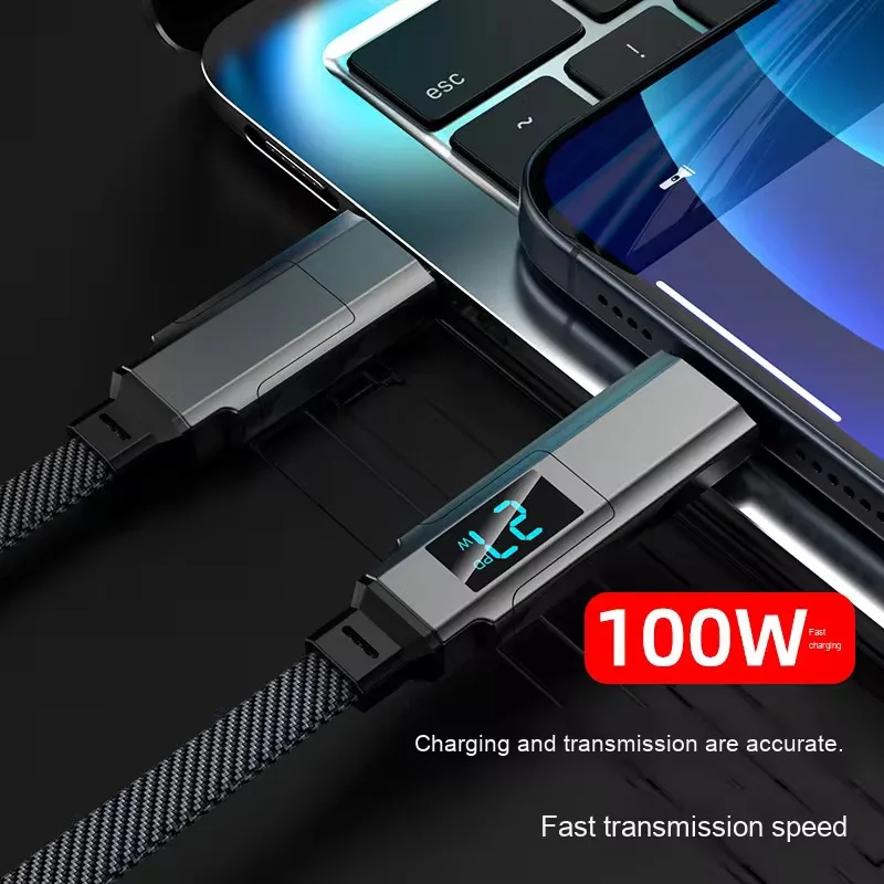 High Quality Digital Display 100W Fast Charging 4-in-1 Double Type C Data Cable PD 1M 2M USB Charger Cable for Mobile Phone Pack of 10
