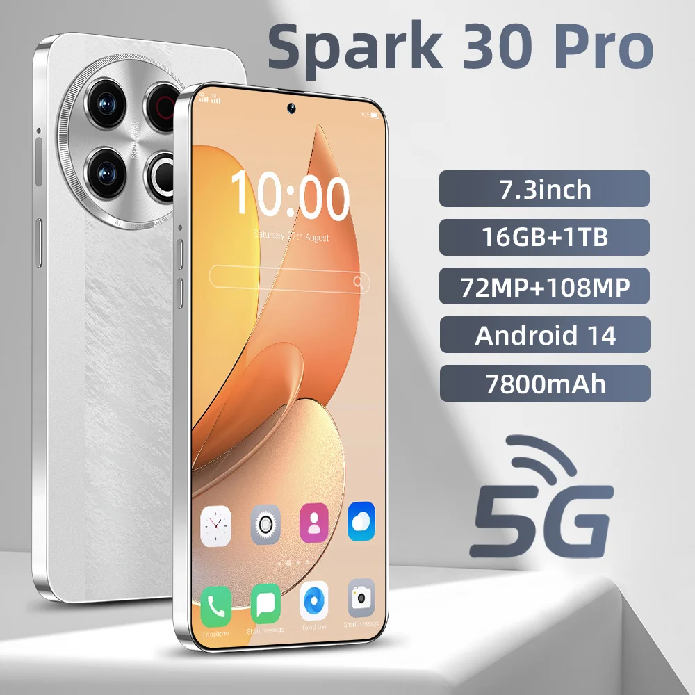 Hot New Super Cheap Spark 30 Pro 5G Smartphone Android 13 7-Inch HD 8000 Mah 16+1TB Storage 108MP Supports Multiple Languages