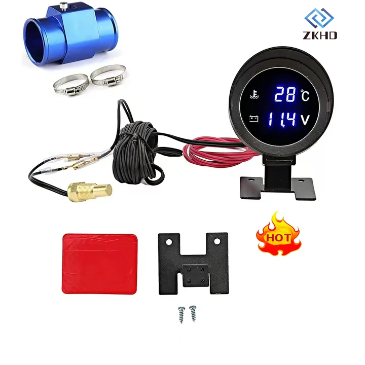 Hot Sales Universal 2 in 1 Round Led Digital Car Truck Water Temp Gauge + Voltmeter Volt Voltage Meter 12V 24V With 10mm Sensor