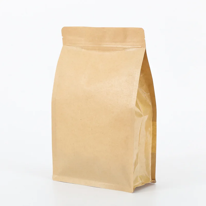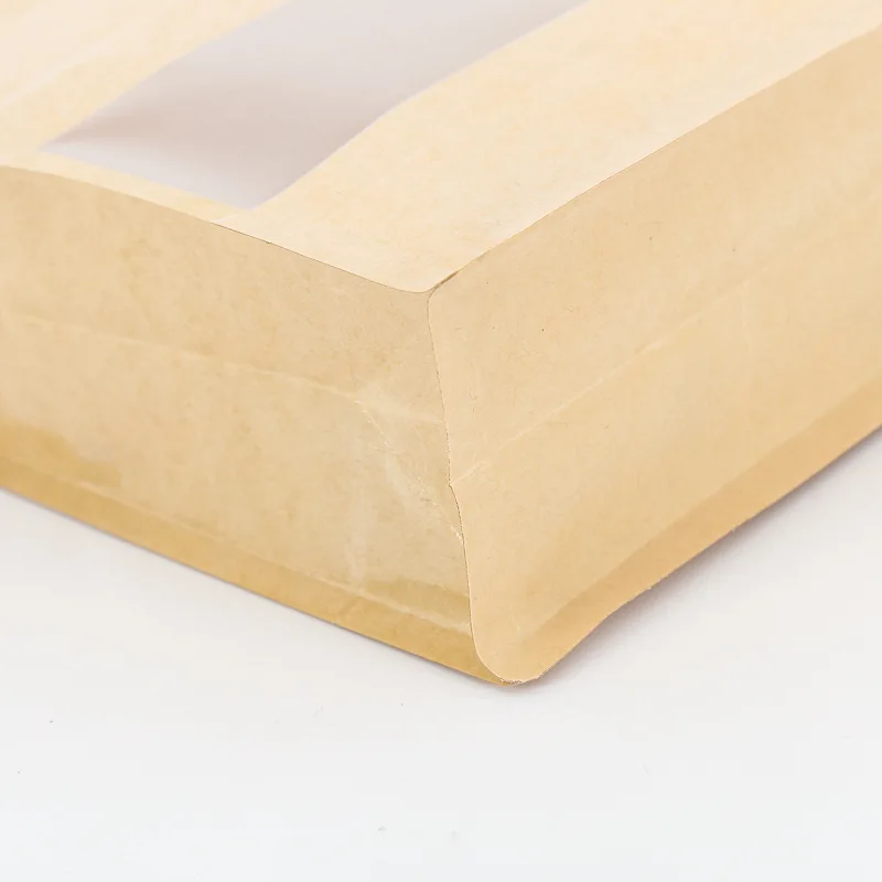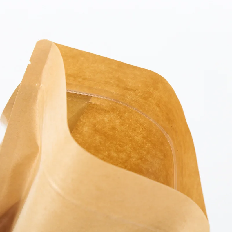 Biodegradable Brown Kraft Paper Flat Bottom Side Gusset Stand up Pouch Ziplock with Window Packaging Food Bag