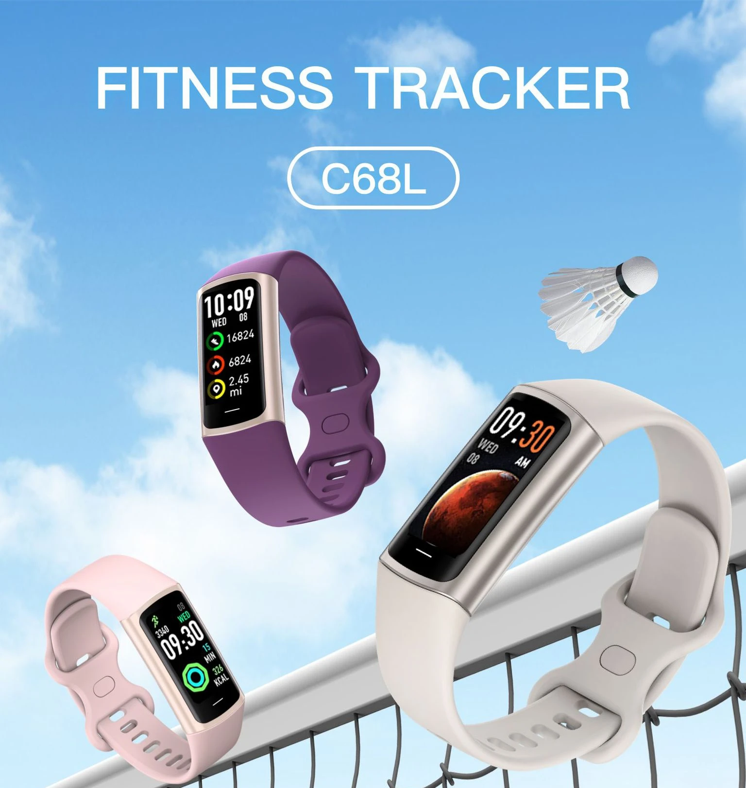 C68L Smart Bracelet Heart Rate Monitoring Blood Oxygen Measurement Running Blood Pressure Message Push Long Battery