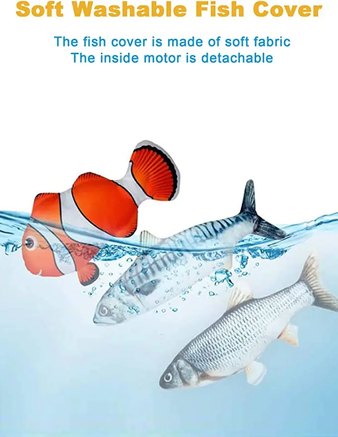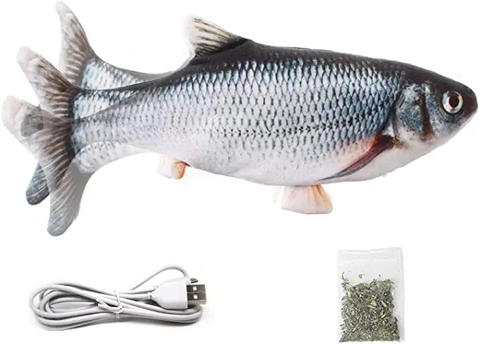 Custom Luxury Eco-Friendly Cute Funny Simulation Electric Moving Plush Fish Toy Interactive Motorised Catnip Toy Pack of 200