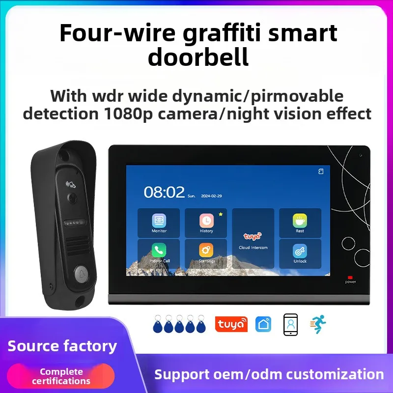 Four-Line Graffiti 7-Inch WiFi Video Doorbell 1080P Wide-Angle Night Vision WDR PIR Two-Way Intercom Cross-Border