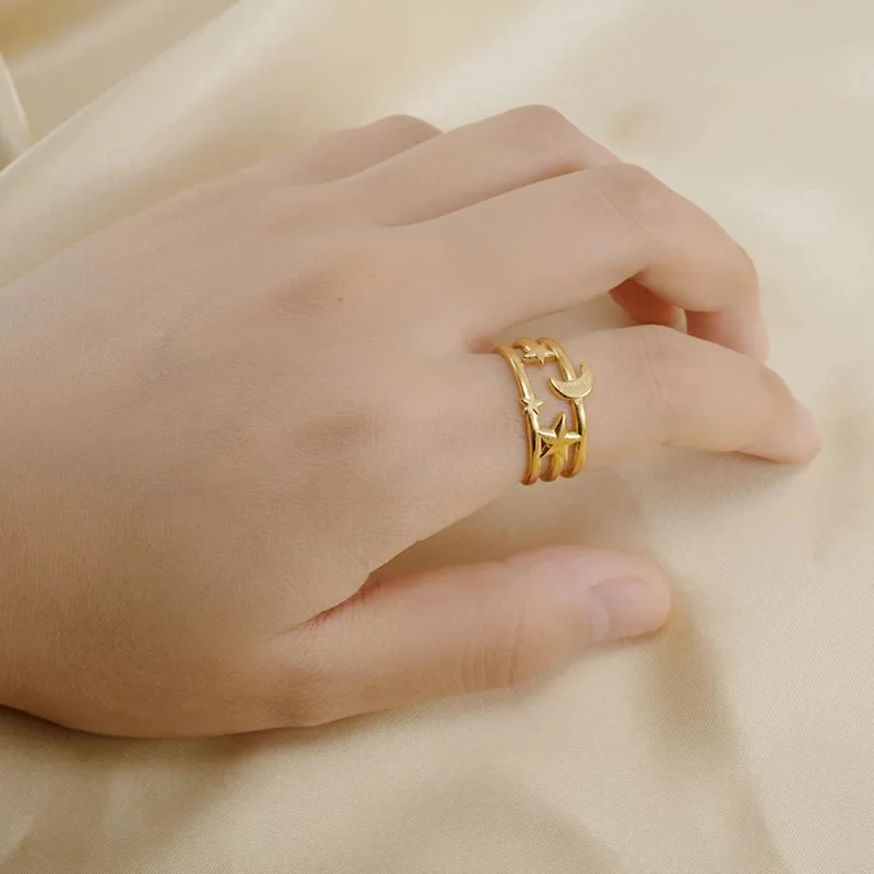 Titanium Steel Ring & 18K Gold Stainless Steel Ring Customizable Fashionable Ins Style Versatile Trendy Jewelry Pack of 2