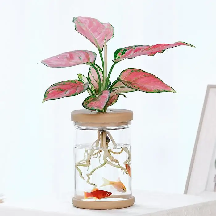 Hydroponic Plant Vase with Mini Fish Tank- a Living Desktop Ecosystem