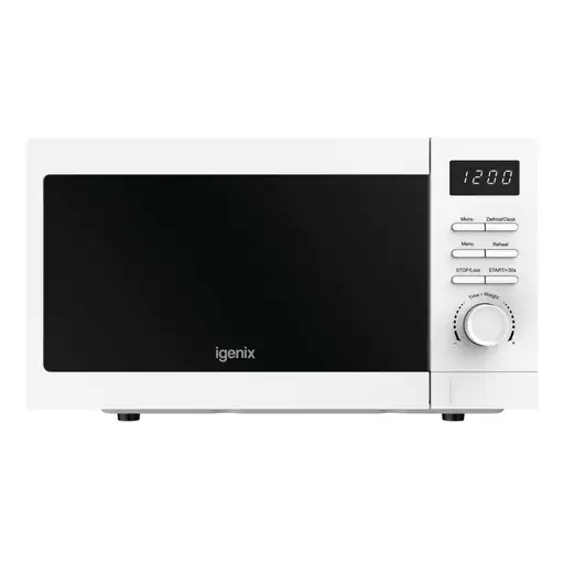 Brand: Igenix | Built In: No | Cable Length: 0.85m | Capacity: 20L | Child Lock: Yes | Colour: White | Compliance: CE+UKCA | Control Type: Digital | Cord Length: 0.85m | Defrost Function: Yes | Guarantee: 2 Years | Insulation Class: Class I | Logistics Partner: NONE | Number Of Auto Programmes: 8 | Packaged Weight: 13.30000kg | Packaging Types: Each | Plug Type: BS1363 | Power Output: 800W | Product Dimensions: (H)263 mm x (W)456 mm x (D)326 mm | Punchout: No | Safety Lock: Yes | Similar Stock: No | Timer: 60 Minutes | Turntable: Yes | Unspsc V13: 52141502 | Unspsc V18: 52141502 | Unspsc V22: 52141502 | Unspsc V24: 52141502 | Voltage Rating: 230V