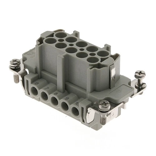 Heavy Duty Connector, 10+PE Signal, CNE Series, Insert, 10 Contacts, 10A, Receptacle, Screw Socket. · · · Female insert · · Product type With female contacts · · Version screw terminal connection · · Size “57.27” · · No. of poles 10 poles + PE · · 16a current rated · · Voltage rating 500V · · Rated impulse withstand voltage 6 kV · · Wire cross section 0,50 mm – 4,00 mm · · AWG size 20 – 12