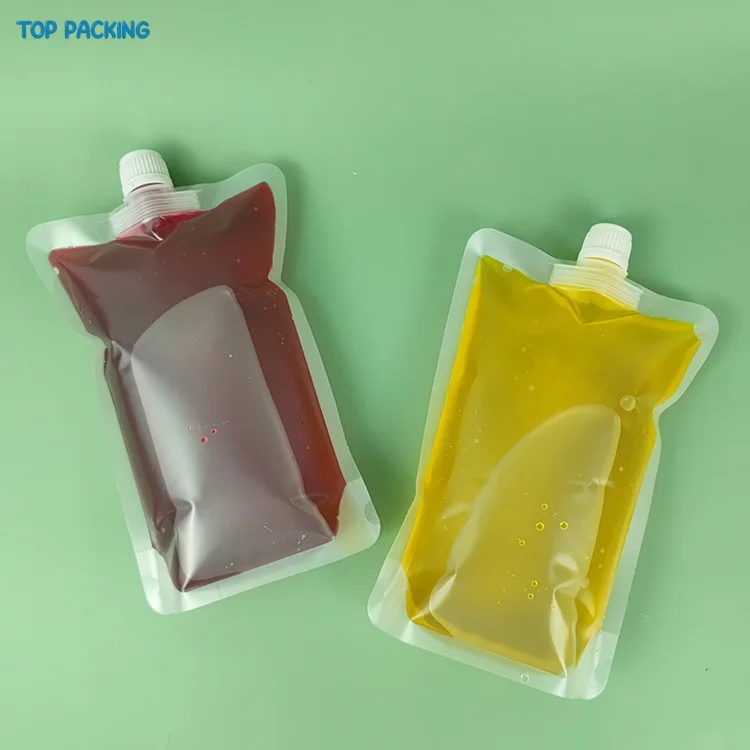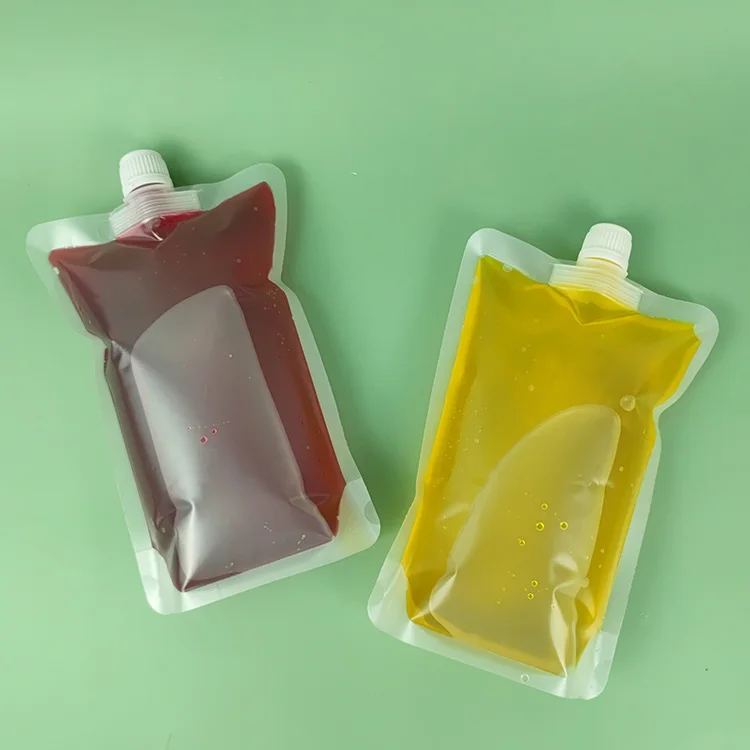 In Stock Wholesale 100 200 300ml Food Fruit Blank Transparent Stand Up Plastic Spout Drink Juice Eco Pouches BagsPlastic Pouches Drink Bags Material PET/NYLON/PE Thickness & Size Ready to ship Color CMYK + spot colors, complex design colors LOGO Customized Grade Food Grade Price According to your bag size, quantity, colors etc. Material Style Laminated various layers materials Production Time 5-10 days Samples Free Payment Terms Credit Card; Debit Card; T/T; Western Union; Money Gram; Paypal; Visa Shipment Ways Express/Air/Sea Recommend Products Recommended by seller Custom Print Logos Mylar Doy Pack Food Juice Drink Shaped Liquid Eco Transparent Stand up Pouch Spout Pouch Bag.