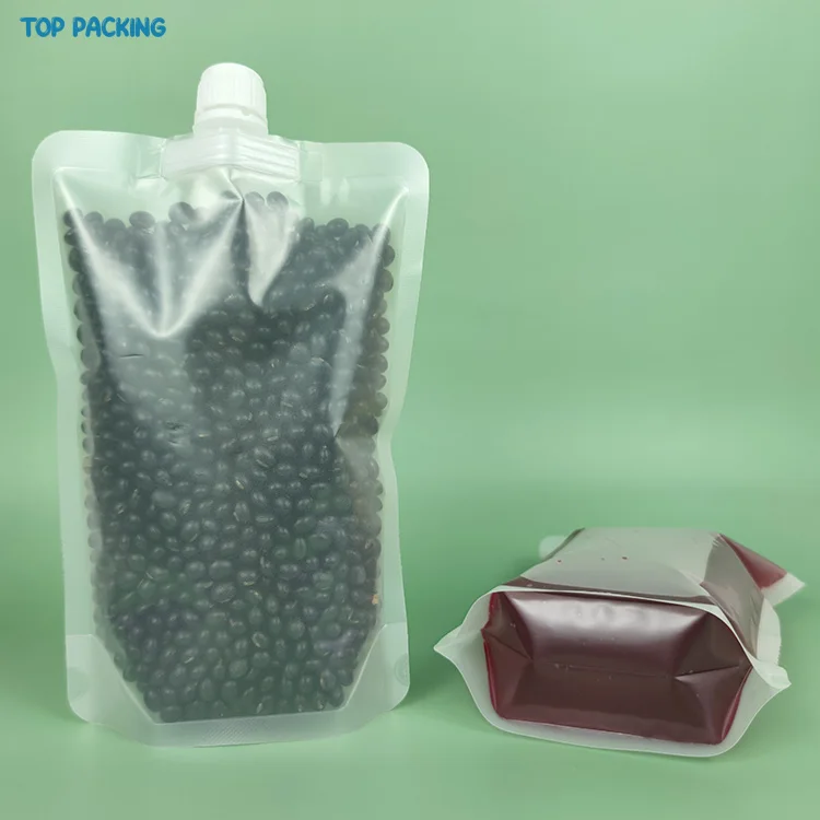 Wholesale 100 200 300ml Food Fruit Blank Transparent Stand up Plastic Spout Drink Juice Eco Pouches Bags Pack of 500