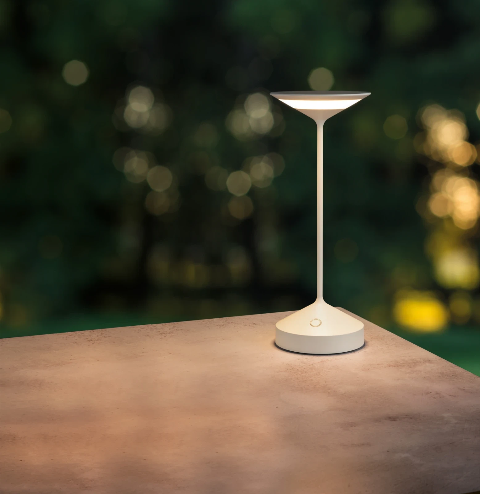 Round rechargeable lamp with charging base 2W IP54 3000K 168lm White · · · Ideal for domestic applications, no electrician required · · This portable touch dimmable lamp allows for flexible illumination · · 6-8 hrs charge time, with up to 10 hrs run time at 100% light output · · The docking station is ideal for charging and convenient portability for use anywhere around the home · · Uses Lithium-ion batteries, increased charge and discharge cycles, for longer life span · · 3000K colour temperature to match the Architectural Exterior Range · · IP54 rating, suitable for exterior use