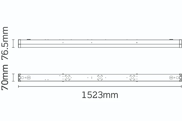 Technical Specifications Technical Specifications Batten luminaire Width 70 mm Height/depth 76.5 mm Length 1523 mm Number of poles 3 Rated luminous flux acc. IEC 62722-2-1 4440 lm Maximum system power 37 W Power factor 0.9 Nominal voltage 220 – 240 V Colour temperature 4000 – 4000 K Suitable for emergency lighting No With movement sensor No Electrical connection with connector system No Luminaire may be covered with thermally insulating material No Dimming leading edge No Dimming LineSwitch No Light source included Yes Dimming trailing edge No Control gear included Yes Dimming mains voltage modulation No Replaceable control gear Yes Dimming Zigbee No Dimming manufacturer’s proprietary system No Dimming 1-10 V No Dimming DALI No Dimming DMX No Dimming programmable No Dimming 0-10 V No Dimming touch and dim No Dimming RF No Dimming DSI No Dimming sine wave reduction No Dimming with push-button No · Manual: https://asset.eezybridge.com/ad7e7626-8f4a-4edb-b78d-9ca040e321dd/2054469