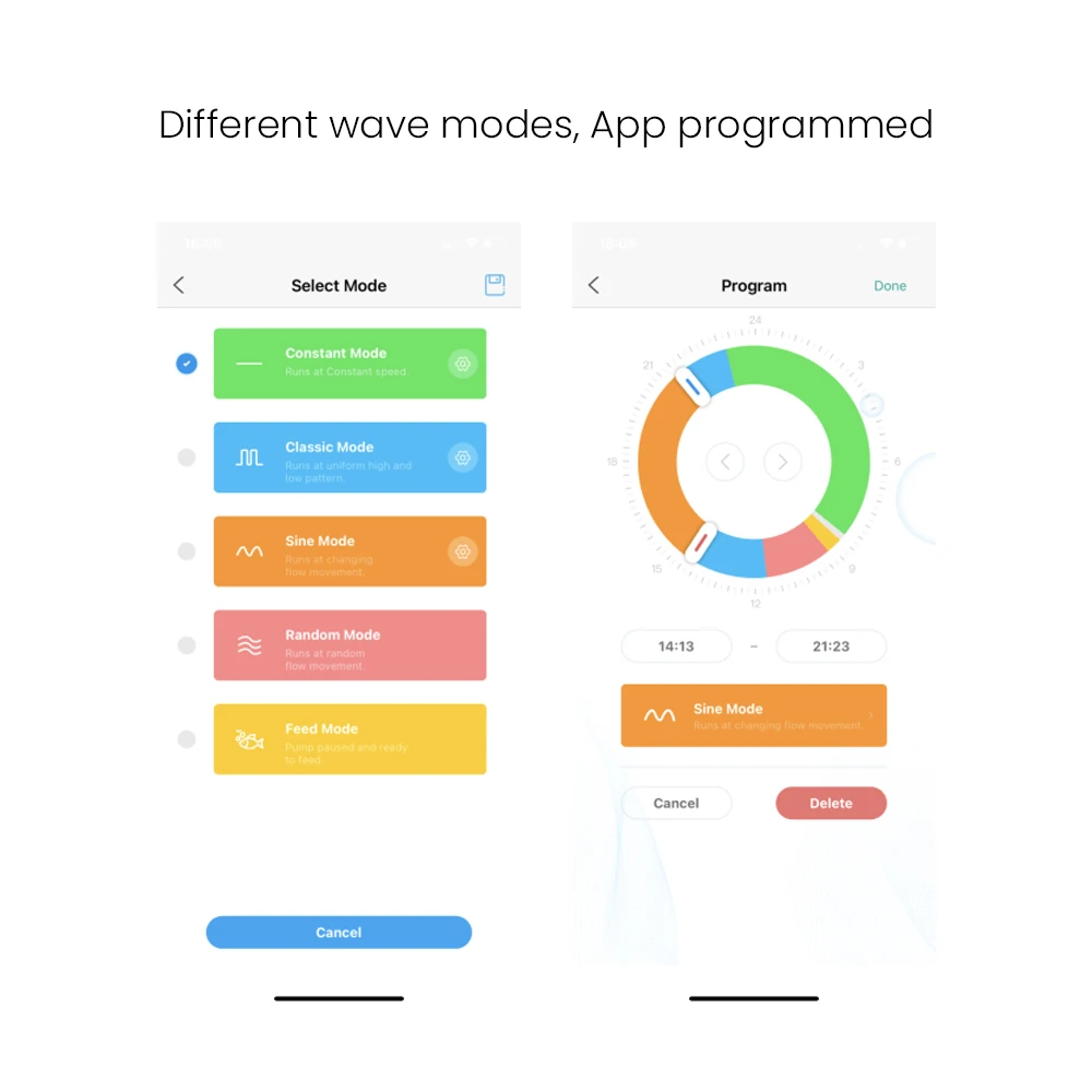 Product Description Key Features *Cordless design,No wires in the aquarium; *Smart manual controller and App control connect via WiFi&Bluetooth; *Different wave modes,App programmed; *Sine Wave Technology,Ultra-quiet<30dB; *Multi-device Operation; *Tool-free disassembly for easy maintenance.