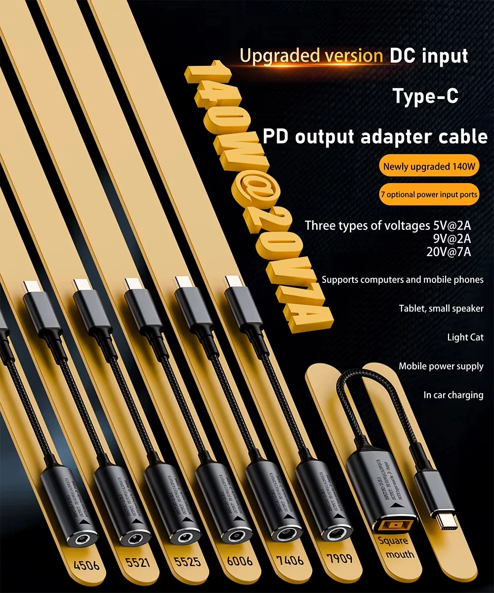 Specification JILIAN DC female to C male 140W Type-C Adapter DC Input to Type-C Adapter Short Cable PD Output 140W Charging Auto-Detect 5V/9V/20V Item 140W DC Type C USB C PD connecter Brand name JILIAN/OEM,ODM Material PC Data Transfer 140W Color Pure Black,Light Black Length 10cm*3cm*2CM Housing PC Packaging Poly Bag/Gift Box/Customized Warranty Quality testing 100% Full Inspection, Electric Test, Function Test Function Data Transfer + Charging Key features – High quality nickle plated connector – Premium plastic housing – Up to 10Gbps Data Transfer Rate JILIAN – Consumer Electronics Industry Leader Manufacturer 10 Years Experience of OEM/ODM, to provide you with the best quality service! Contact us now! Selling Point 1.This 140W DC to Type C PD Power Connector offers efficient charging for laptops with USB-C ports. Its versatility enables it to identify and convert 5V/9V/20V for optimal compatibility. 2.The adapter supports a wide range of power outputs, including 5V/9V at 2A, and 20V at 7A, ensuring that your device receives the right amount of power for fast, safe charging. 3.Engineered with short circuit protection and made from PC fireproof materials, this adapter offers a high level of safety, ensuring that your laptop and charger are protected during charging. 4.As a private mold adapter and USB-C PD adapter, it is designed specifically for your device, providing a snug and secure connection to your laptop’s USB-C port. 5.With its sleek and modern design, the Infinite Beauty-branded DC to C 140W adapter is not only efficient but also portable, making it the perfect companion for your on-the-go digital needs.