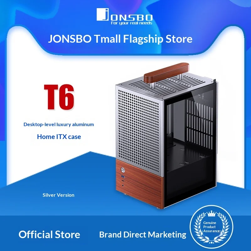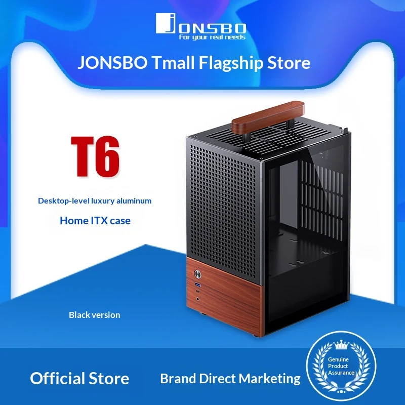 JONSBO Josebo ATX Full Tower Chassis T6 Aluminum Alloy Glass Side Air-Cooled Walnut Handle Decoration Audio Front Ports